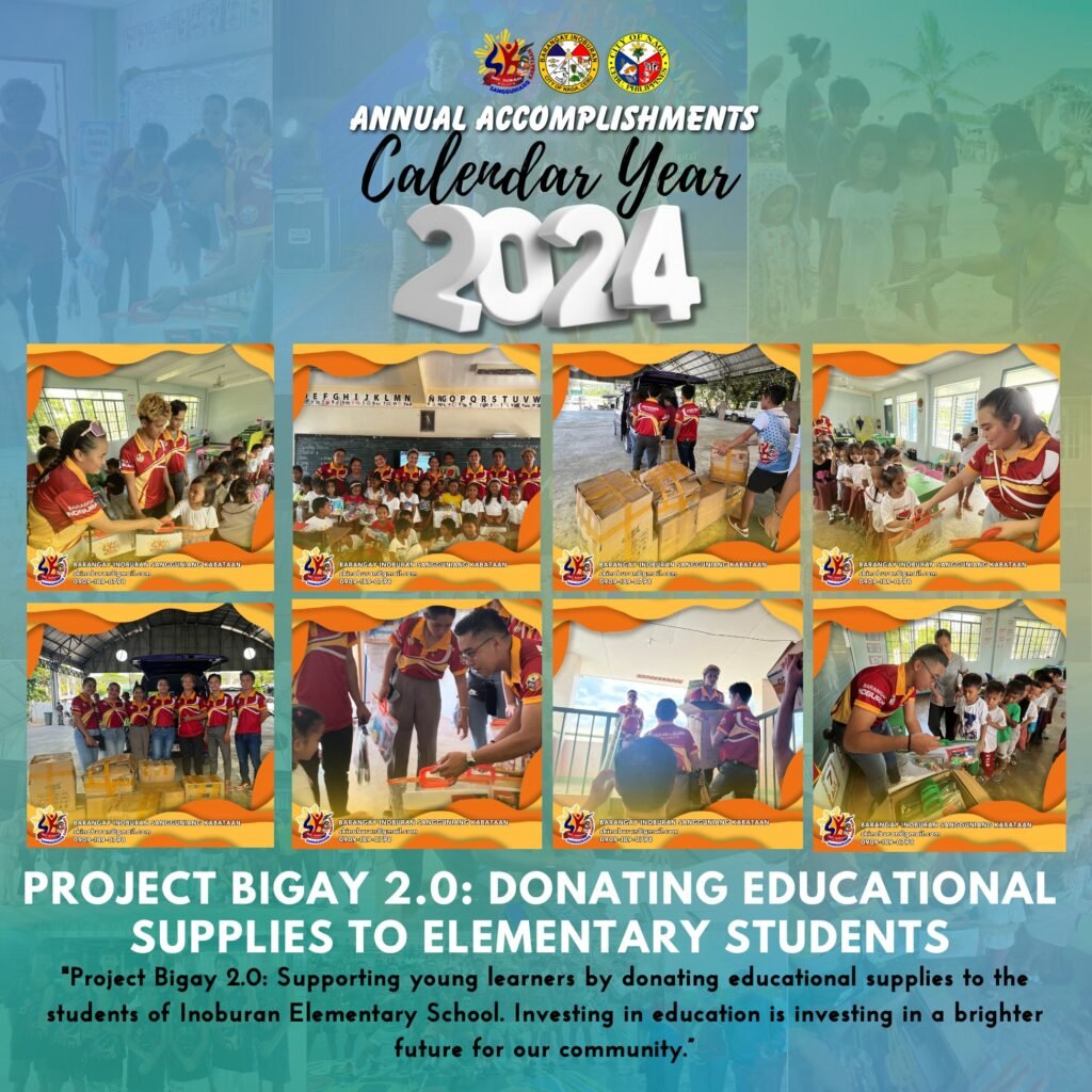 The Sangguniang Kabataan of Barangay Inoburan is proud to share our annual accomplishments for 2024! From sports leagues and educational support to outreach programs and cultural celebrations, our youth leaders worked tirelessly to empower the community and make a positive impact.