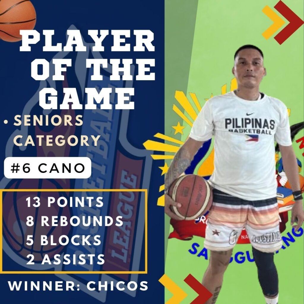 🏀 SENIORS CATEGORY – PLAYER OF THE GAMEby Raishell DamoleDecember 2, 2025 Bayabas vs Chicos🏆 Winner: Chicos #SKFiestaLeague2024