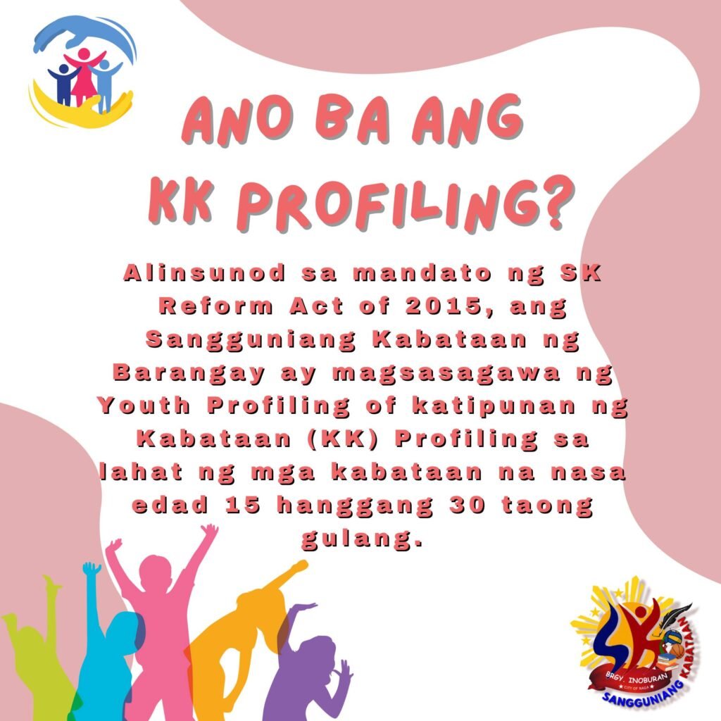 - Ang KK Profiling o Katipunan ng Kabataan Profiling ay tumutukoy sa pagkakolekta ng impormasyon o pagsusuri sa mga kabataan para sa iba’t ibang layunin, tulad ng pag-unlad ng programa, patakaran, o pagsusuri ng pangangailangan ng komunidad.
